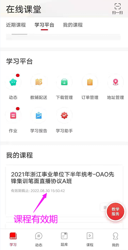 通過電腦或APP在線課堂的課程列表中,可查看課程有效期(默認顯示開通時間起1年有效期,具體請結合上述1-5條說明及個人所購課程類型進行判別)