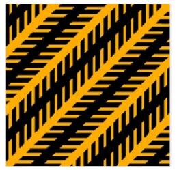 佐爾拉錯覺是指一些平行線由于一些附加線段的影響而看成不平行的現象。對于這類幾何錯覺,神經生理學理論認為,當兩個輪廓彼此接近時,它們在視網膜上的投影也彼此接近,造成視網膜上的神經細胞間存在互相抑制的現象出現,進而引起幾何圖形形狀和方向的錯覺。但其實較粗的黃線是平行的。