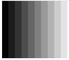 (4)馬赫帶現象 馬赫帶是視覺系統的側抑制作用引起的。當一個視覺感受器受到刺激的時候,由此產生的神經沖動將對鄰近部位細胞輸入的信號產生抑制性影響。在明暗交界的地方,亮區一側的抑制作用大于暗區的抑制作用,從而產生暗區更暗,亮區更亮的馬赫帶現象。