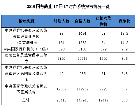 【截至17日17時(shí)】2016國(guó)考報(bào)名14萬(wàn) 最熱職位競(jìng)爭(zhēng)比888:1