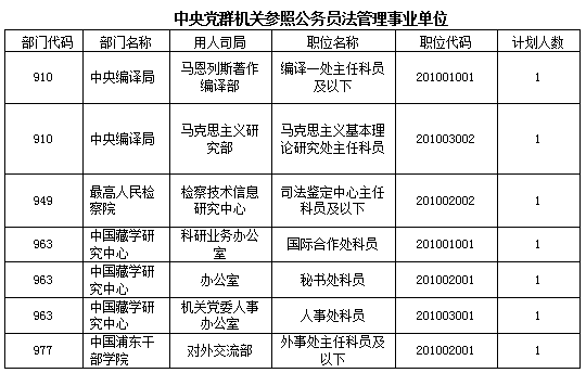 中公網(wǎng)校專家分析,參照公務(wù)員法管理事業(yè)單位無人報考職位主要集中在銀監(jiān)會等;中央國家行政機關(guān)省級以下直屬機構(gòu)無人報考職位主要集中在海關(guān)、鐵路公安等;中央國家行政機關(guān)(本級)無人報考職位主要集中在科技部、公安部、國稅總局等;中央黨群機關(guān)無人報考職位主要集中在中宣部、全國工商聯(lián)等;中央黨群機關(guān)參照公務(wù)員法管理事業(yè)單位無人報考職位主要集中在中央編譯局、中國藏學(xué)研究中心等;中央黨群機關(guān)參照公務(wù)員法管理人民團(tuán)體和群眾團(tuán)體無人報考職位只有三個,分別來自中國科協(xié)、中國文聯(lián)、中國人民對外友好協(xié)會。