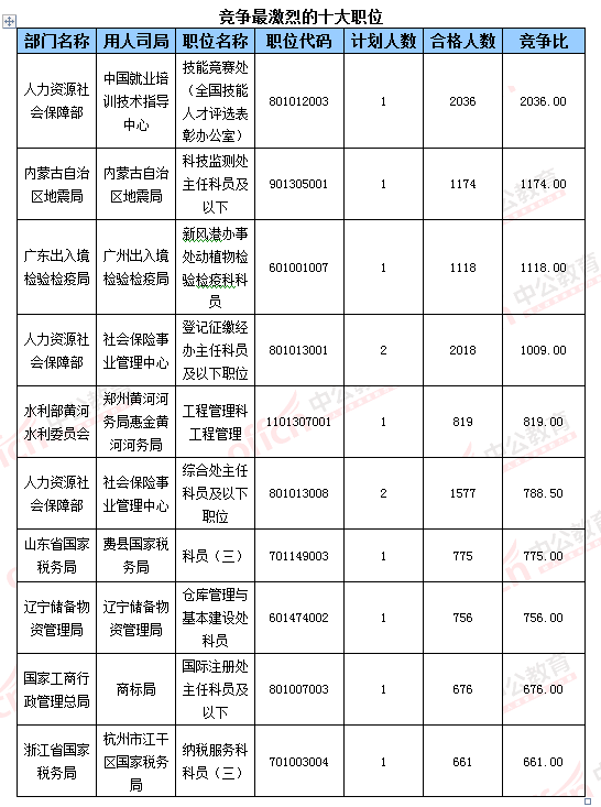 遼寧儲(chǔ)備物資管理局與內(nèi)蒙古自治區(qū)地震局兩部門(mén)競(jìng)爭(zhēng)比500:1,前者由于招錄人數(shù)少于后者,競(jìng)爭(zhēng)比增長(zhǎng)更為迅速,目測(cè)接下來(lái)仍將穩(wěn)占首席。