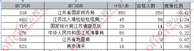 為幫助廣大考生更清晰的了解今日報名情況,江蘇中公網校整理了審核通過人數前幾位的部門以及競爭比例最激烈的部門,供廣大考生參考: