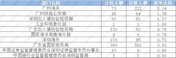 為幫助廣大考生更清晰的了解今日報(bào)名情況,廣東中公網(wǎng)校整理了審核通過人數(shù)前十位的部門以及競爭比例最激烈的十大部門,供廣大考生參考: