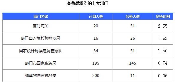 為幫助廣大考生更清晰的了解今日報名情況,福建中公網校整理了審核通過人數前五位的部門以及競爭比例最激烈的五大部門,供廣大考生參考:
