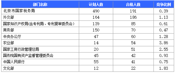 為幫助廣大考生更清晰的了解今日報名情況,北京中公網校整理了審核通過人數前十位的部門以及競爭比例最激烈的十大部門,供廣大考生參考: