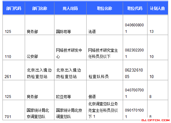 截止到15日16時,工作地點在北京的職位共有951個無人報考,占全部職位的81.3%。下面是無人報考職位一覽表,中公網校專家建議廣大考生多關注一些較冷職位,避免激烈競爭,結合自身條件,找到屬于自己的職位。