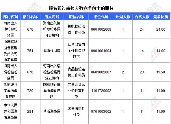 【截至16日8時】2017國考報名海南239人過審 競爭比例已達24:1