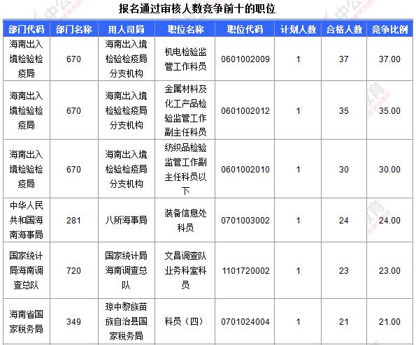 【截至16日16時】2017國考報名海南576人過審 競爭比例已達37:1