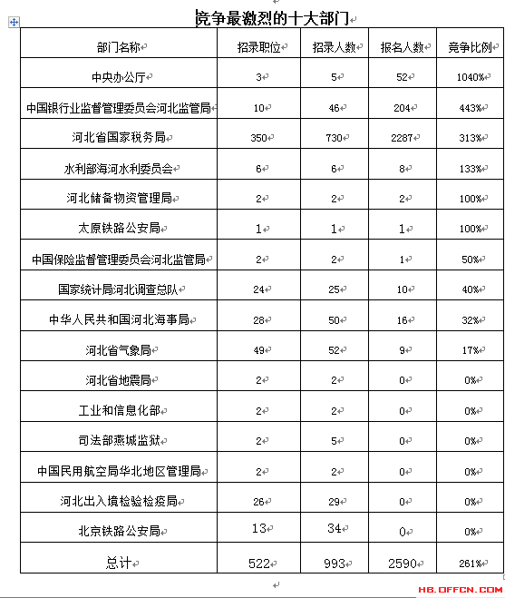 為幫助廣大考生更清晰的了解今日報名情況,河北中公網校整理了審核通過人數前十位的部門以及競爭比例最激烈的十大部門,供廣大考生參考: