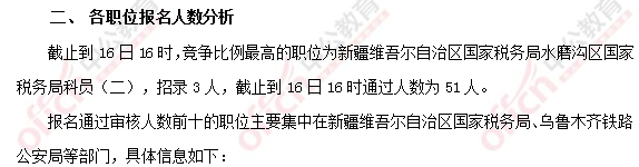 【截至16日16時】2017國考報名新疆1341人過審 最熱職位17:1