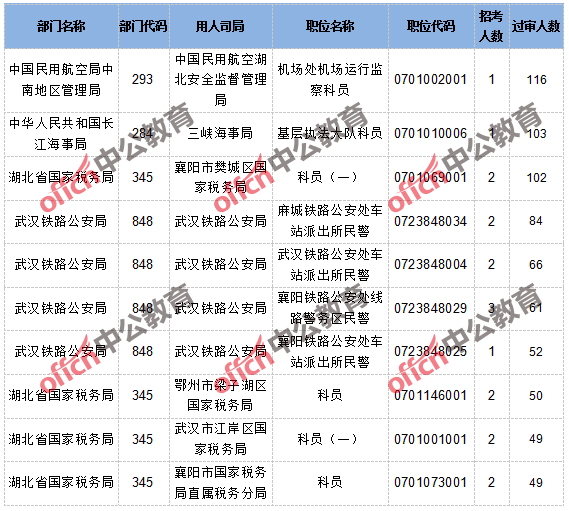 【截至17日8時】2017國考報名湖北2835人通過審核,報考職位已過半