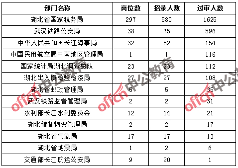 截止到10月17日8時,湖北地區(qū)各部門報考人數如下: