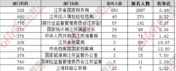 為幫助廣大考生更清晰的了解今日報名情況,江蘇中公教育整理了審核通過人數前十位的部門以及競爭比例最激烈的十大部門,供廣大考生參考: