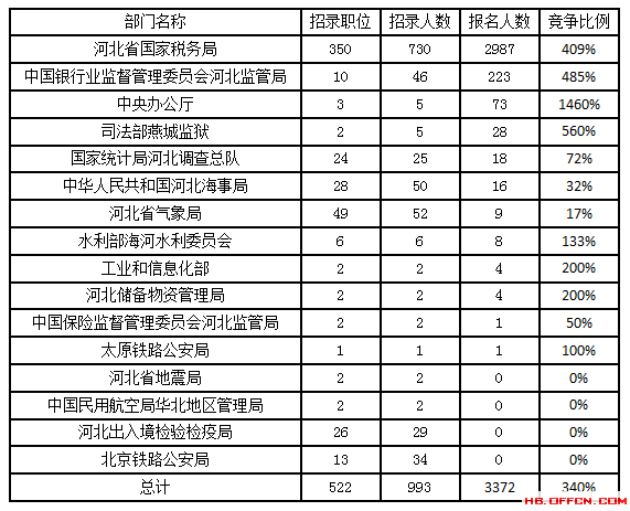 為幫助廣大考生更清晰的了解今日報名情況,河北中公教育整理了各部門審核通過人數以及競爭比例,供廣大考生參考: