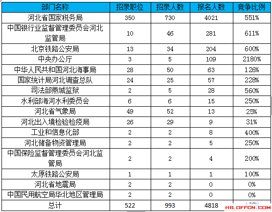 為幫助廣大考生更清晰的了解今日報名情況,河北中公教育整理了各部門審核通過人數以及競爭比例,供廣大考生參考: