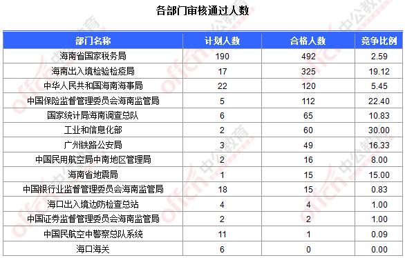 為幫助廣大考生更清晰的了解今日報名情況,海南中公教育整理今天各部門的報名情況供廣大考生參考: