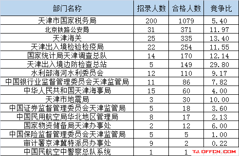 為幫助廣大考生更清晰的了解今日報名情況,天津中公網校整理了審核通過人數前五位的部門以及競爭比例最激烈的五大部門,供廣大考生參考: