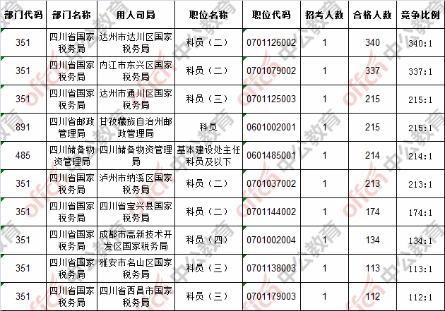 截止到18日16時,競爭比例的職位為‘達州市達川區國家稅務局科員(二)’一職,招錄1人,截止到18日16時通過人數為340人。