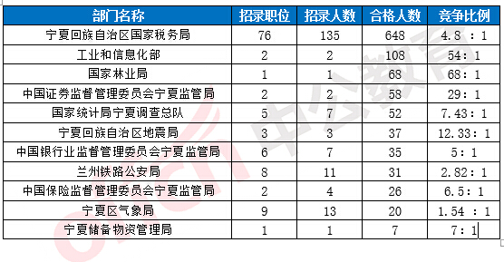 截止到18日16時,寧夏國考合格人數前三位的部門依次是:寧夏回族自治區國家稅務局、工業和信息化部、國家林業局。