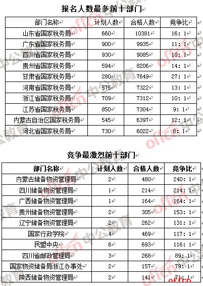 從部門的報名人數上看,報名人數前十的部門依舊被國稅“全包攬”,報名人數均在6000人以上,但與昨日同期相比,山東國稅由6385人,一躍萬人大關,廣東國稅也由5581人,增至9935人,距離“破萬”僅一步之遙,而四川國稅也由昨日同期的4365人,飛躍增加到9085人,接近萬人,增加近一倍,上升了4個名次。