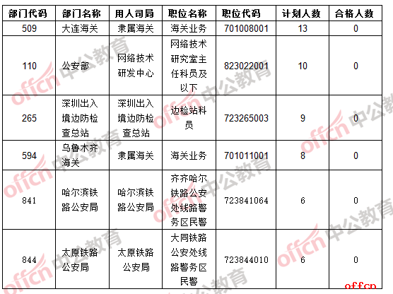 值得考生注意的是,目前仍有2082個職位無人報考,這些職位之所以受冷落基本原因有兩個,一是地處偏遠,待遇差,發展前途不明朗,另外一個則是 “門檻高”,符合條件的考生少,沒有報考資格,只能“望崗興嘆”。以下是無人報考職位中招錄人數較多的職位: