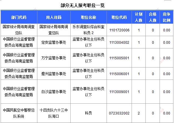 截止到20日8時,工作地點在海南的職位共有21個無人報考。海南中公網校提醒廣大考生,多關注無人報名職位,會大大降低競爭。