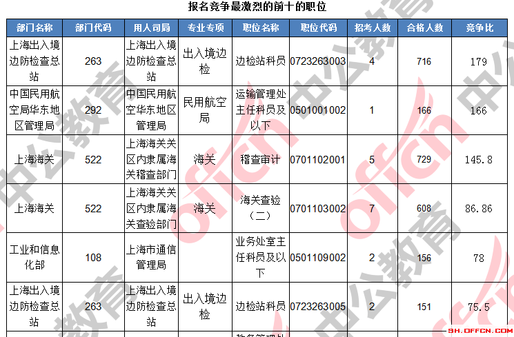 截止到20日8時,工作地點在上海的職位共有34個無人報考,占全部職位的9.9%。下面是無人報考職位一覽表.