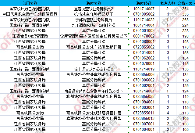 報名通過審核人數前十的職位主要集中在江西省國家稅務局、國家統計局江西調查總隊具體信息如下: