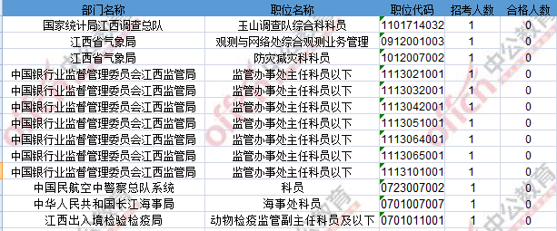 截至20日16時,據江西中公網校統計,2017國考招錄職位中工作地點在江西的職位報考人數為10349人,共有13個職位無人通過審核。