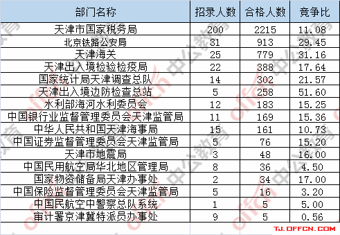 截止到20日16時,通過審核人數前三位的部門依次是:天津市國家稅務局、北京鐵路公安局、天津海關,三部門通過審核總人數達39075人,占通過審核總人數的69.9%。