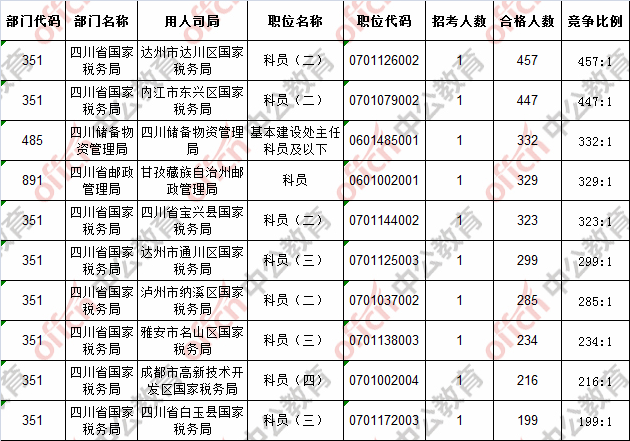 截止到20日16時,競爭比例的職位為‘達州市達川區國家稅務局科員(二)’一職,招錄1人,截止到20日16時通過人數為457人。