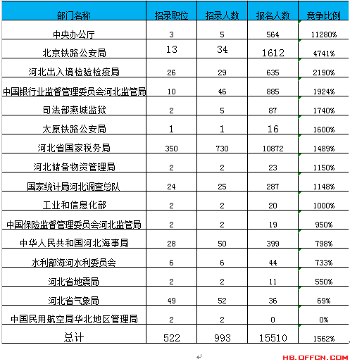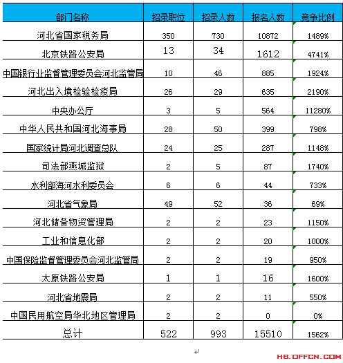 截止20日16時,2017國考河北地區(qū)所有職位報名情況