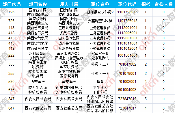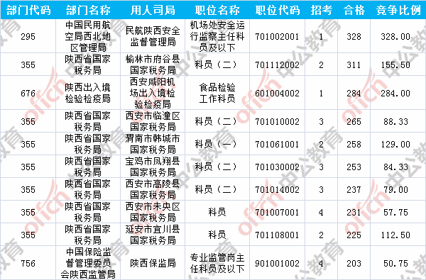 報名通過審核人數前十的職位主要集中在陜西出入境檢驗檢疫局、陜西省國家稅務局、中國民用航空局西北地區管理局等部門,具體信息如下: