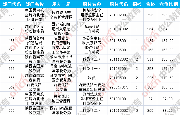 截止到20日16時,競爭比例的職位為中國民用航空局西北地區管理局民航陜西安全監督管理局機場處安全運行監察主任科員及以下一職,招錄1人,截止到20日16時通過人數為328人!