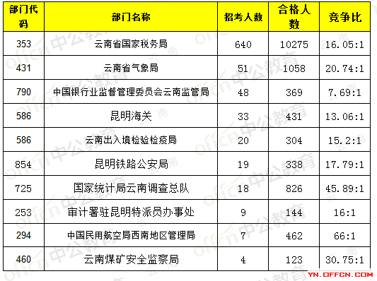 為幫助廣大考生更清晰的了解今日報名情況,云南中公網校整理了審核通過人數部門排名,供廣大考生參考: