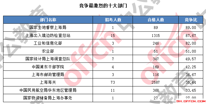 為幫助廣大考生更清晰的了解今日報名情況,上海中公教育整理了審核通過人數前十位的部門以及競爭比例最激烈的十大部門,供廣大考生參考: