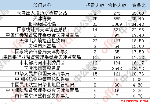 為幫助廣大考生更清晰的了解今日報名情況,天津中公 網校整理了審核通過人數前五位的部門以及競爭比例最激烈的五大部門,供廣大考生參考:
