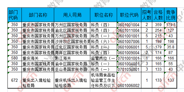 報名通過審核人數前十的職位主要集中在萬州區國家稅務局、渝北區國家稅務局、沙坪壩區國家稅務局等部門,具體信息如下: