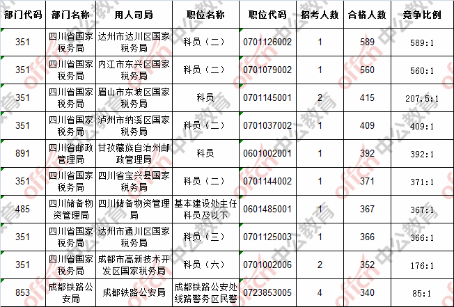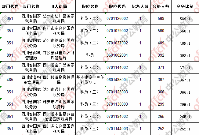 首日報名通過審核人數前十的職位主要集四川省國家稅務局等部門,具體信息如下: