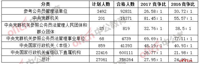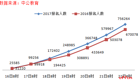 【截至22日8時】2017國考報名人數統計: 75萬余人過審,近28人爭1職位