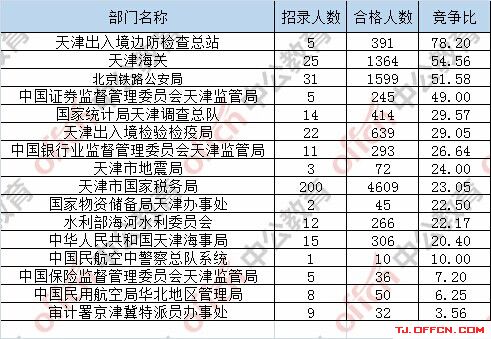 為幫助廣大考生更清晰的了解今日報名情況,天津中公網校整理了審核通過人數前五位的部門以及競爭比例最激烈的五大部門,供廣大考生參考: