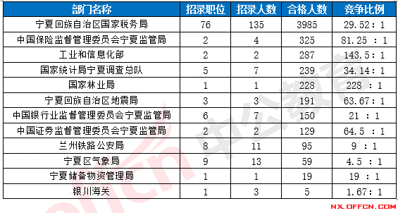 2017國(guó)考寧夏地區(qū)各部門報(bào)考情況