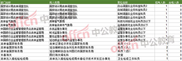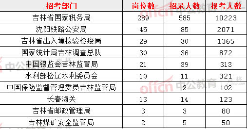 截止到23日8時,競爭比例的職位為吉林鐵路公安處線路警務區民警一職,招錄4人,截止到23日8時通過人數為894人。其次為吉林省國稅局部門。