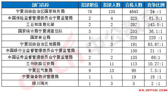 2017國(guó)考寧夏地區(qū)各部門報(bào)考情況