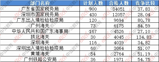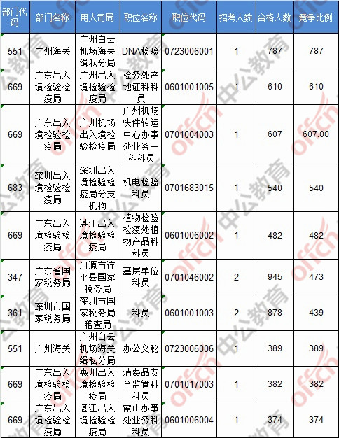 報(bào)名通過(guò)審核人數(shù)前十的職位主要集中在深圳海關(guān)、拱北海關(guān)、廣東省國(guó)家稅務(wù)局,具體信息如下: