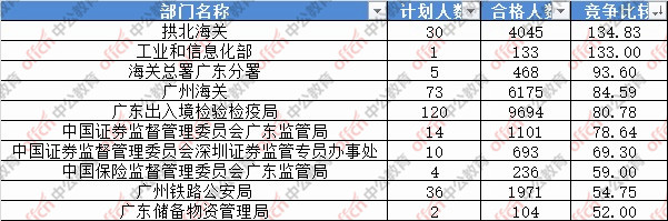 為幫助廣大考生更清晰的了解今日?qǐng)?bào)名情況,廣東中公網(wǎng)校整理了審核通過(guò)人數(shù)前十位的部門(mén)以及競(jìng)爭(zhēng)比例最激烈的十大部門(mén),供廣大考生參考: