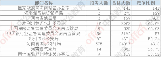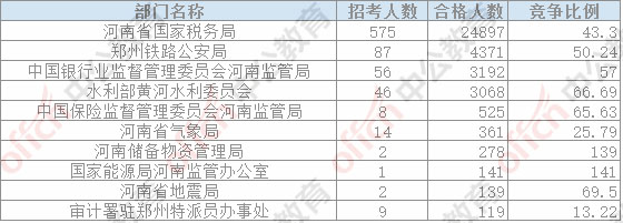 截止23日16時,通過審核人數前三位的部門依次是:河南省國家稅務局、鄭州鐵路公安局,中國銀行業監督管理委員會河南監管局,三部門通過審核總人數32460人,占通過審核總人數的87.5%。