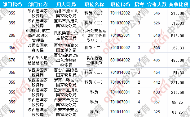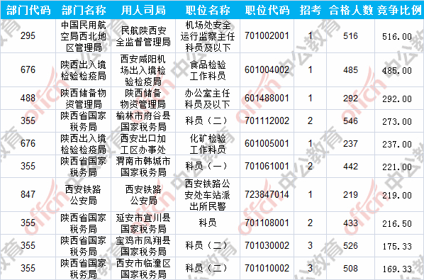 報(bào)名通過審核人數(shù)前十的職位主要集中在陜西省國家稅務(wù)局、中國民用航空局西北地區(qū)管理局、陜西出入境檢驗(yàn)檢疫局等部門,具體信息如下: