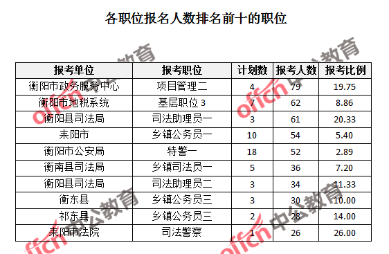 為幫助廣大考生更清晰的了解報名情況,中公教育整理了永州市各職位的報名人數排名以及競爭比例排名,供廣大考生參考: